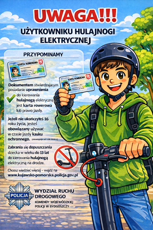 13 lat to minimalny wiek do kierowania hulajnogą elektryczną lub urządzeniem transportu osobistego na drodze! Zmiana ta weszła w życie 3 marca i jest odpowiedzią na rosnącą liczbę zdarzeń drogowych z udziałem użytkowników tego typu pojazdów. Apelujemy do rodziców i opiekunów, aby zwracali uwagę na swoje pociechy! Wspólna odpowiedzialność i przestrzeganie przepisów to klucz do poprawy bezpieczeństwa na drogach.