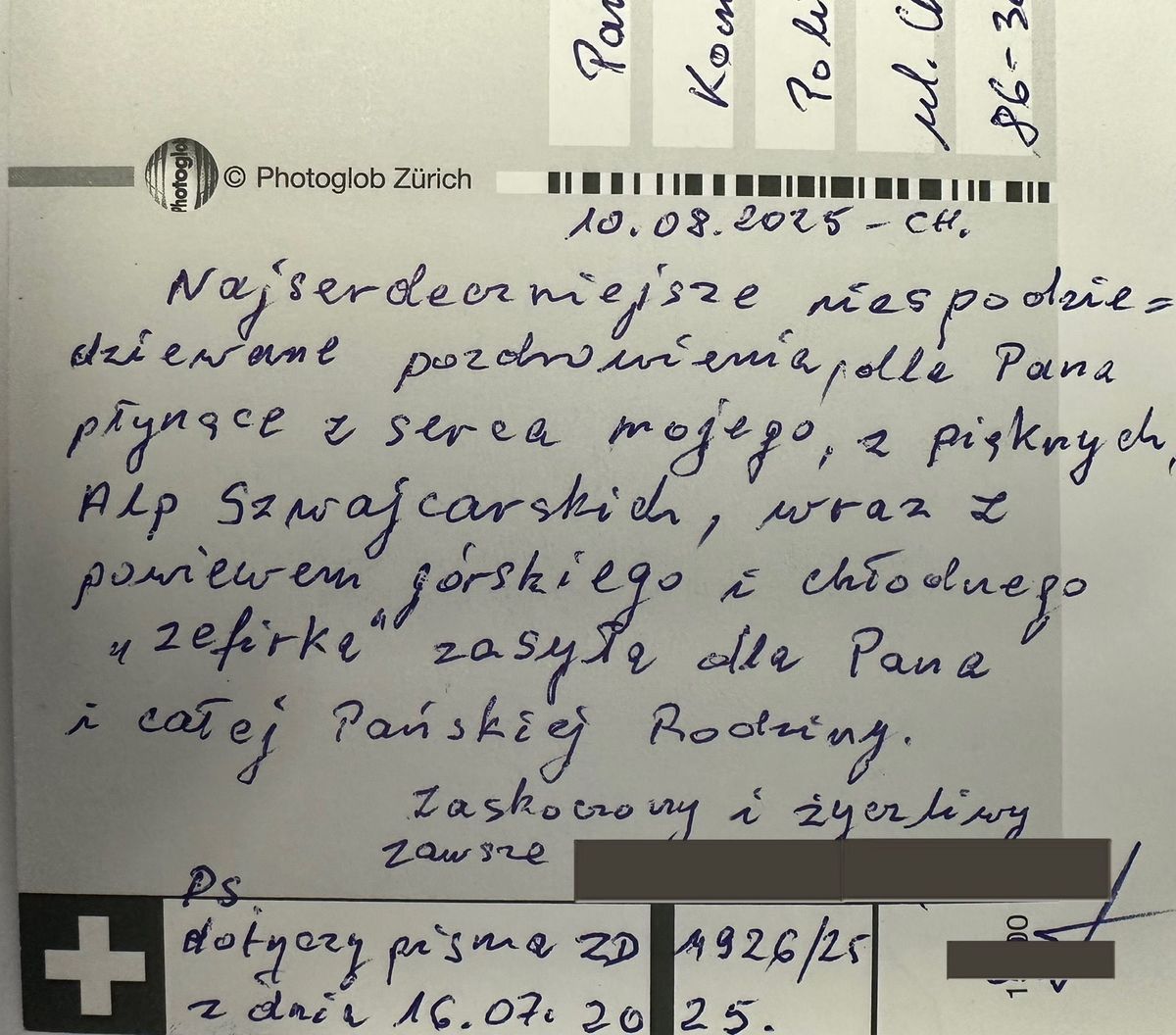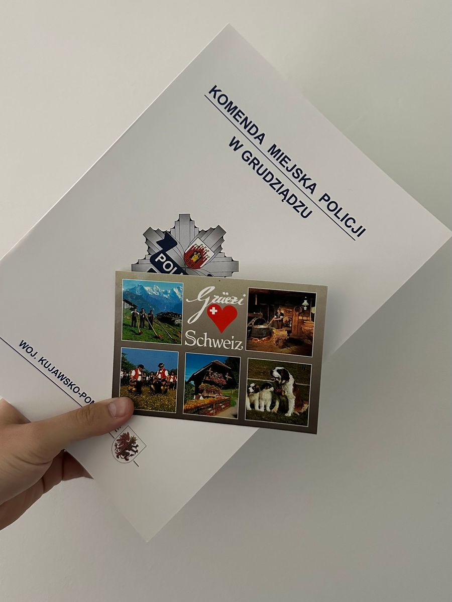 Do Komendanta Miejskiego Policji w Grudziądzu wpłynęły wyjątkowe podziękowania od Pana Mieczysława, który przesyła list wraz z pocztówką z widokiem kolarza w szwajcarskich Alpach. To niecodzienna forma wyrażenia wdzięczności za pomoc i zaangażowanie funkcjonariuszy.