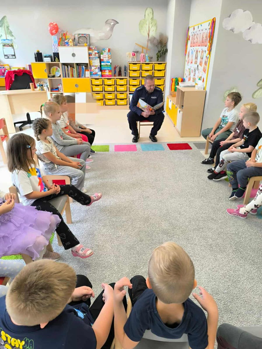 Akcja czytania dzieciom ma również wymiar wychowawczy. Funkcjonariusze zwrócili uwagę na zasady bezpiecznego poruszania się po drogach oraz przypomnieli numery alarmowe, które każdy powinien znać.