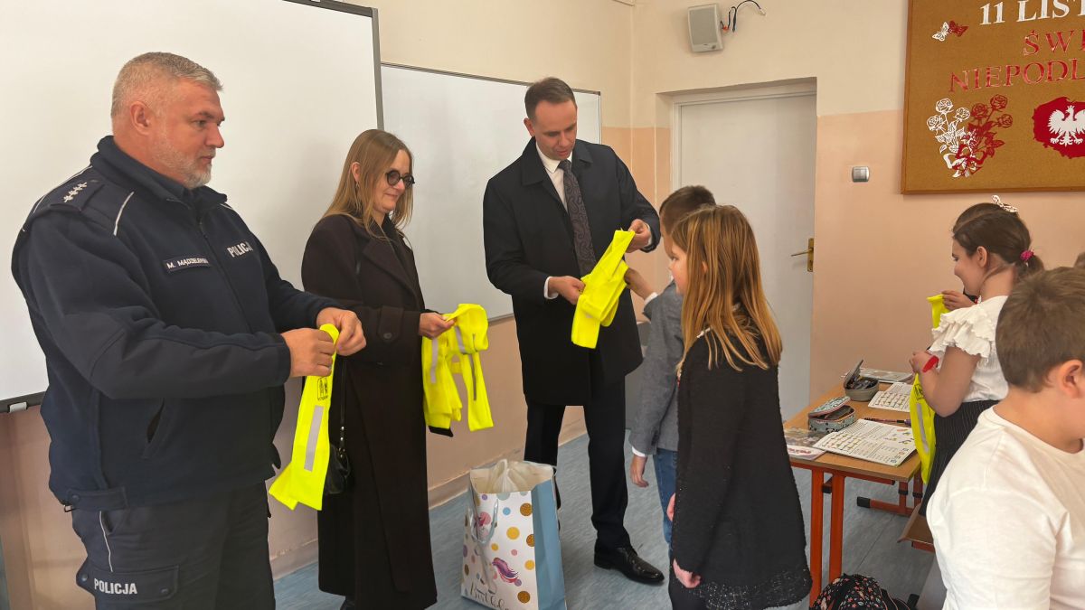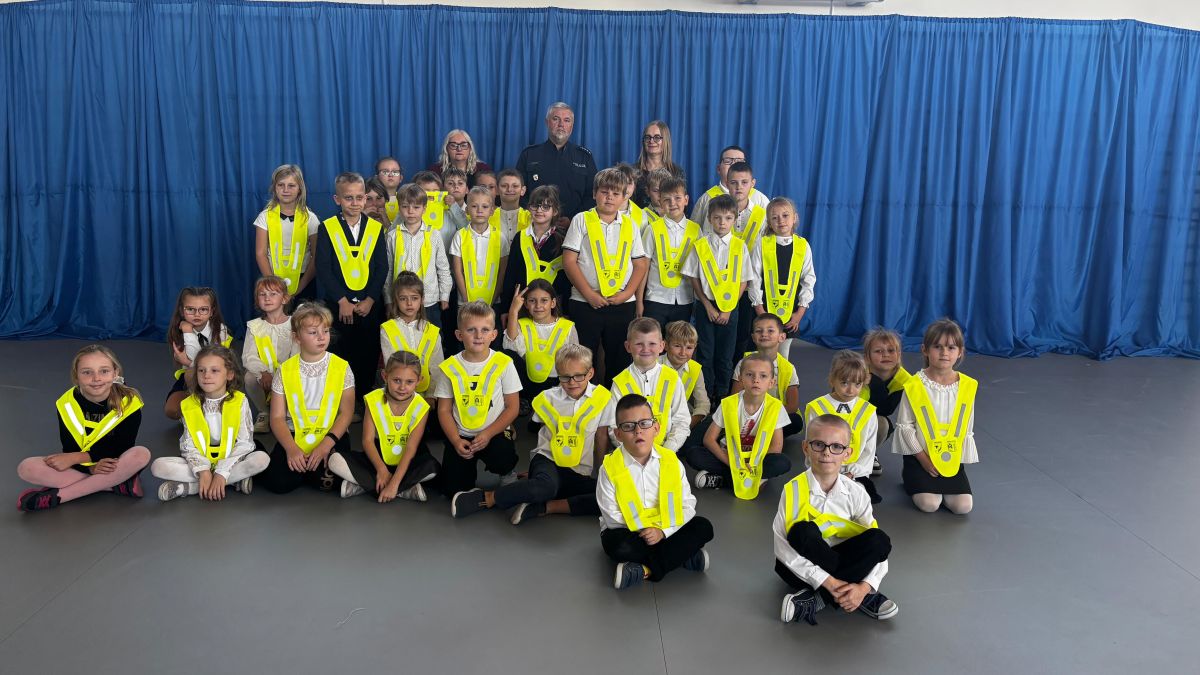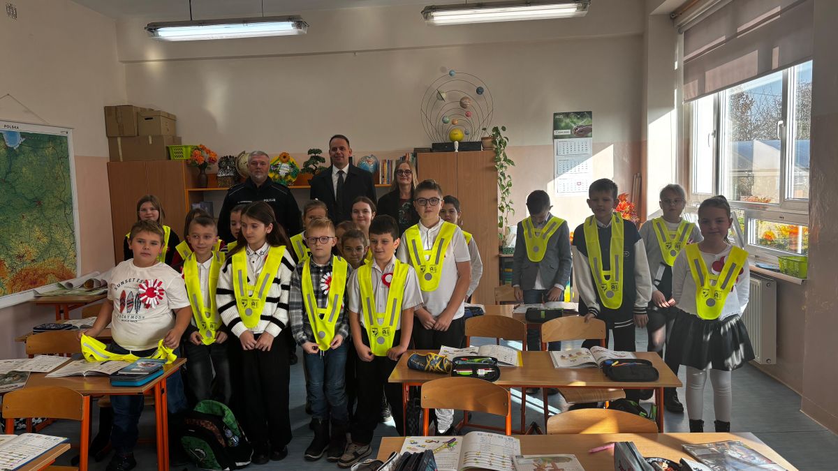 Każdy uczeń z klas I-III otrzymał kamizelkę odblaskową, która poprawi jego widoczność i bezpieczeństwo w drodze do szkoły oraz domu. Spotkania przebiegły w przyjaznej atmosferze, a dzieci chętnie uczestniczyły w rozmowie, dzieląc się swoją wiedzą o zasadach ruchu drogowego.
