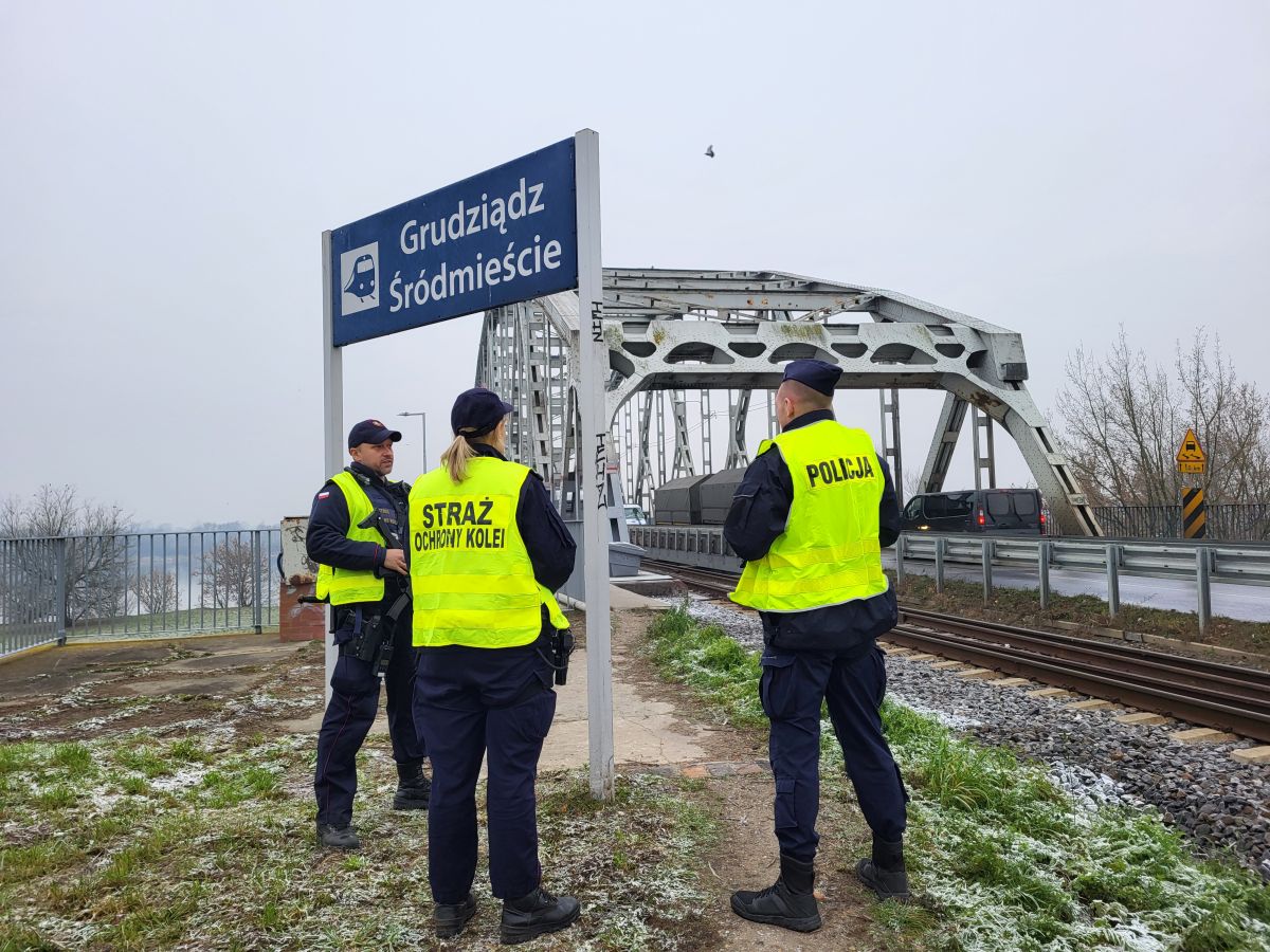 Policjanci z Grudziądza, we współpracy z pozostałymi służbami odpowiedzialnymi za ochronę infrastruktury krytycznej, prowadzą nieprzerwane działania kontrolne. Jeśli zauważysz cokolwiek niepokojącego, podejrzane osoby lub nietypowe przedmioty w rejonie torów czy obiektów kolejowych — niezwłocznie poinformuj służby. Zadzwoń pod numer alarmowy 112.