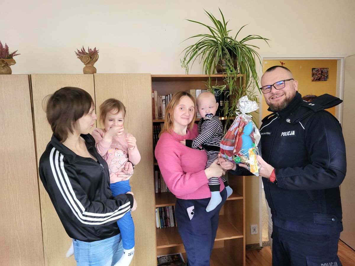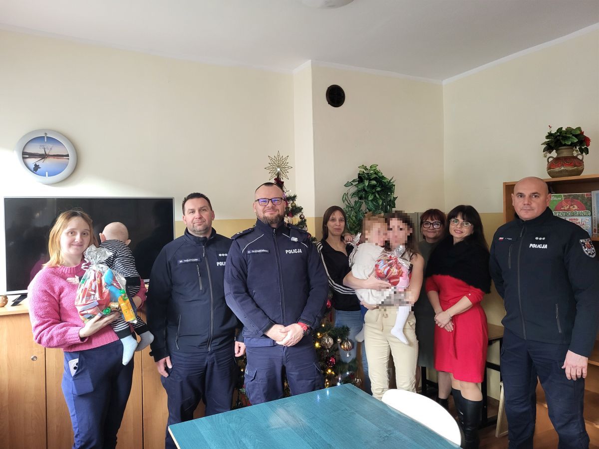 Podczas wizyty nie zapomniano również o najmłodszych. Obecne na miejscu dzieci otrzymały od policjantów świąteczne upominki, które wywołały wiele uśmiechów i radości. Spotkanie przebiegło w serdecznej atmosferze i było okazją do rozmów oraz wzajemnej życzliwości.