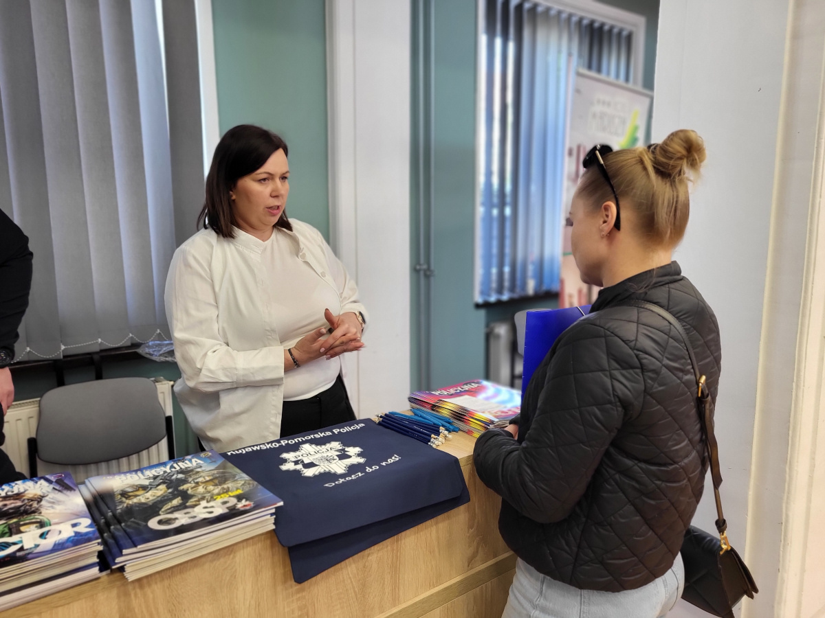 Policjanci oraz pracownicy Komendy Miejskiej Policji w Grudziądzu wzięli udział w targach pracy zorganizowanych w Starostwie Powiatowym. Wydarzenie było doskonałą okazją do bezpośredniego kontaktu z osobami zainteresowanymi służbą w Policji oraz poznania specyfiki tej wymagającej, ale satysfakcjonującej pracy.
