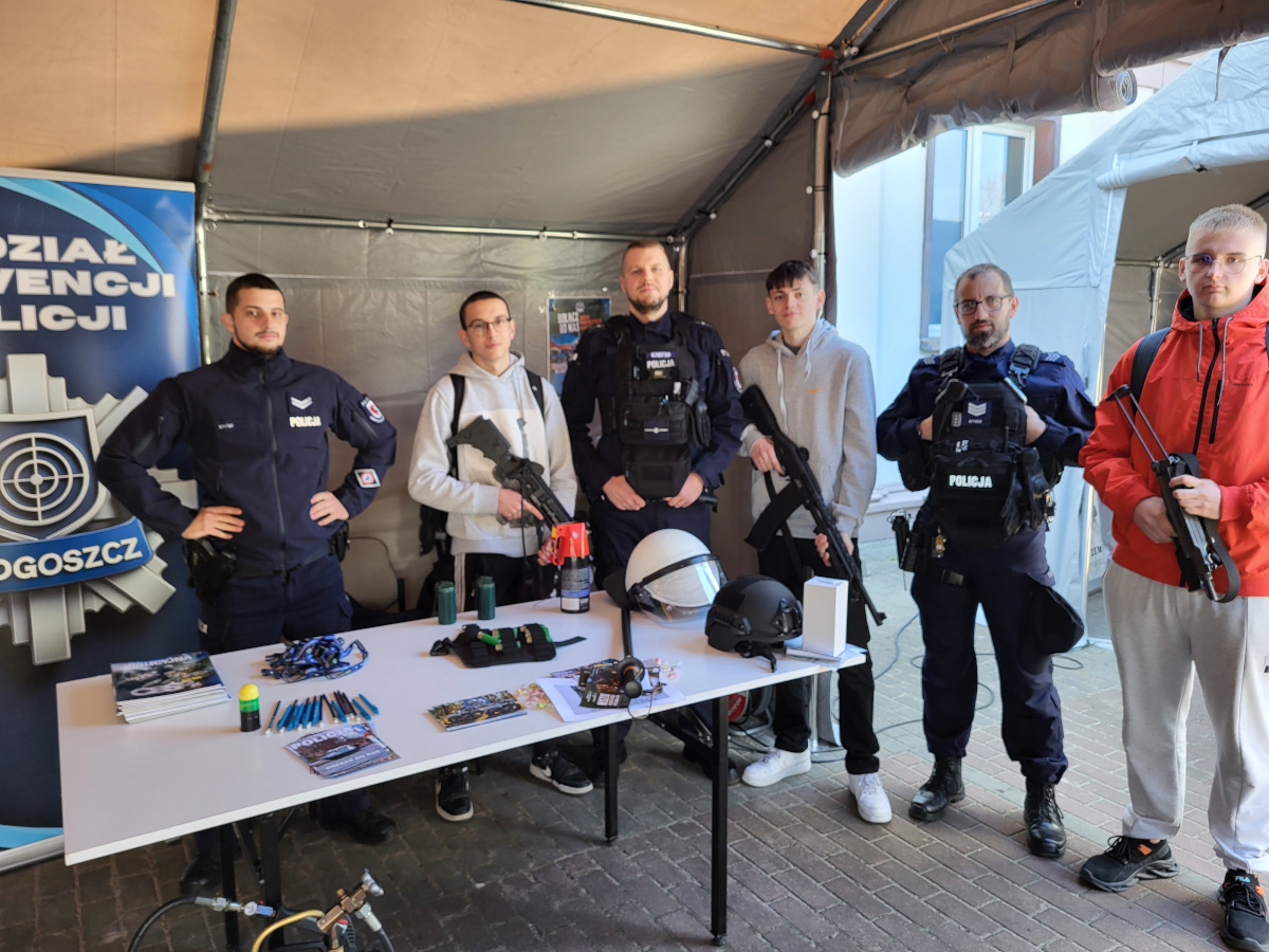Dodatkowo, na drugim stanowisku wsparcia udzielili funkcjonariusze Oddziału Prewencji Policji w Bydgoszczy. Zaprezentowali sprzęt wykorzystywany w codziennej służbie, przybliżając odwiedzającym realia pracy w formacjach prewencyjnych. Pokazy cieszyły się dużym zainteresowaniem, szczególnie wśród młodszych uczestników wydarzenia.